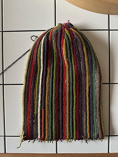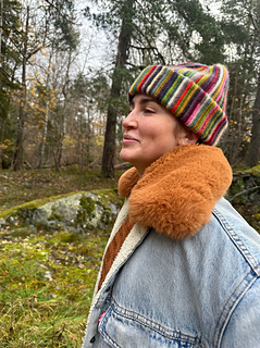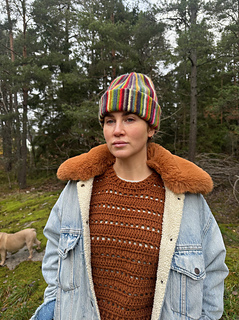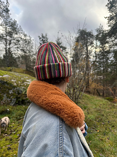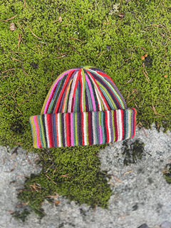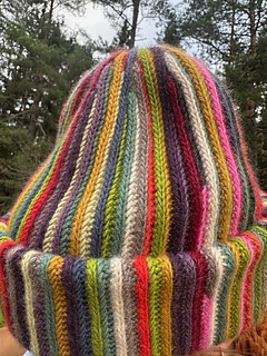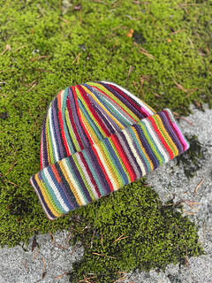 You can use whatever yarn you like, if you use scrap yarn or leftover yarn, it all preferably has the same weight. If you wish for a similar striped design, change color each row. The beanie is made up of repetitions of the same sequence. Because of that you can customize the size and use whatever yarn you would like.