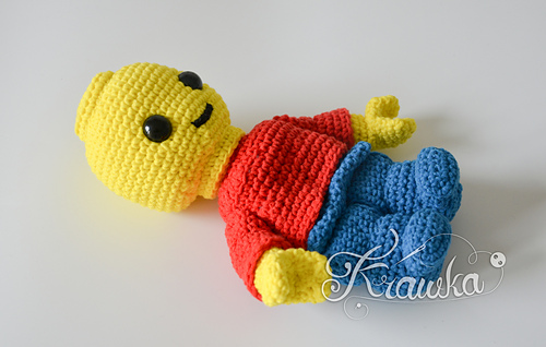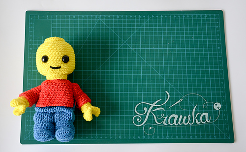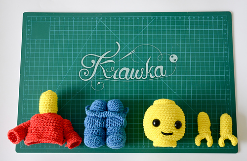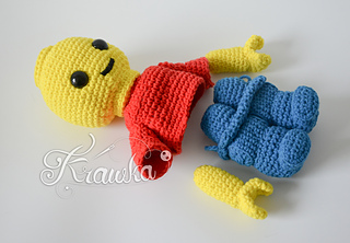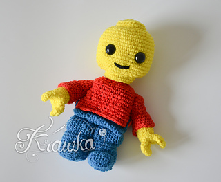 This interactive Lego-inspired toy pattern allows you to craft a charming brick man approximately 9 inches (23 cm) tall, perfect for kids and collectors alike. Designed with a playful, building block aesthetic, this pattern features five separate parts—head, body, legs, and two hands—that can be assembled and disassembled freely, mimicking a real Lego figure for endless imaginative play.