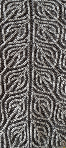 TECHNIQUES USED: Brioching back and forth, brioche decreases/increases (brLsl dec, brRsl dec, br4st dec, brkyobrk, br4st inc, brk1, brp1, sl1yo).