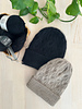 Pipon voi neuloa joko kahden langan yhdistelmällä (esim. merino + mohair) tai yksinkertaisella langalla, jolloin ohjeen mukaan neulotusta piposta tulee napakampi. Musta mallineule on neulottu yhdistelmällä Drops Merino Extra Fine (menekki 95 g) + Drops Kid Silk (menekki 20g). Ruskea mallineule on neulottu yksinkertaisella langalla (Drops Lima).