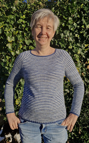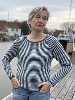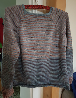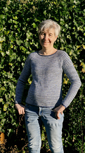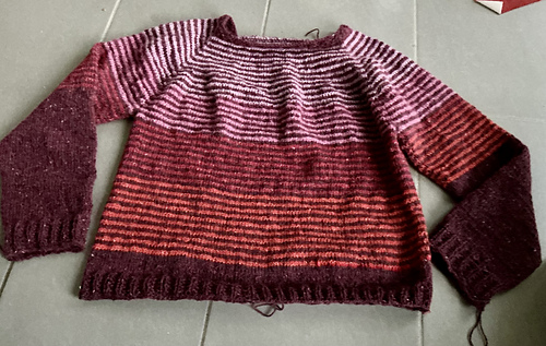 The sweater ist worked down, basically with Raglan increases, but with a little twist to shape a rounded front neck: