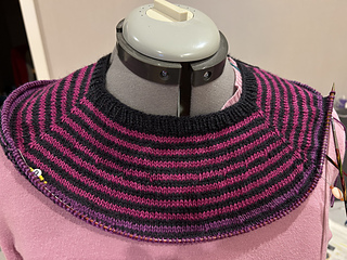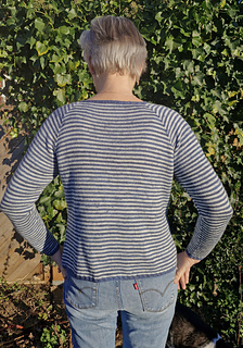 On the front side, the Raglan increases are worked less often, and every 16 rounds, they are complemented by a set of radial yoke increases.