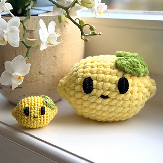 Use any yarn you like, create a small keychain sized lemon with sport weight cotton yarn, or make a larger plush version using super bulky chenille yarn. The pattern includes a full video tutorial to guide you through making this adorable fruit Amigurumi plushie keychain.