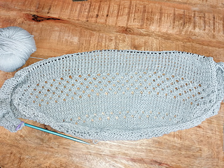 Crescent shawl with a ruffle edge.