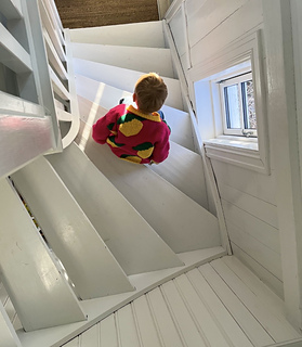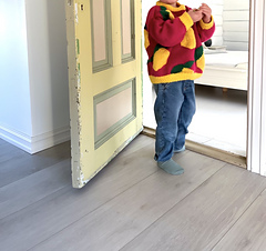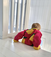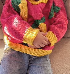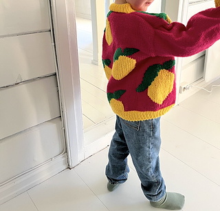 This sweater is inspired by the designer’s son who loves all things bright pink. It is warm and comfortable but created with an acrylic yarn that is sensory-friendly, and washes excellently. It’s perfect for children’s life indoors and outdoors, and the playful colours are visually appealing to little adventurers. The pattern is designed with beginners and busy parents in mind and doesn’t require any fancy techniques. Model is 109cm tall and wearing size 6yrs.