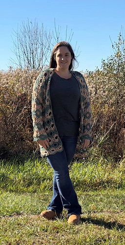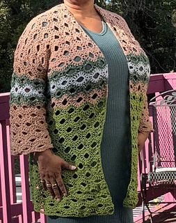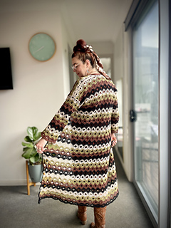 The Lenora cardigan has 3 sizes that fit all XS-4XL+, so it is size inclusive. Part of the pattern like desired length and sleeves are made to measure, this means it can be customized to your desired fit.