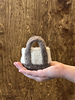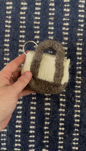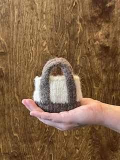 The Lentil Tote is a felted bag charm inspired by classic tote bags.