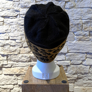 - Hat: Easy Care Mayflower 100 % Merino mulesing-free (185 m / 50 g), Wood Thrush (Brown) and Black, about 40 g per colour for a head circumference of about 55 cm.