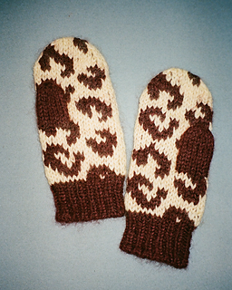 The mittens are worked in the round from ribbing to tip. The pattern is worked according to the diagram. Waste yarn is used for making the thumb, and the shape of the mittens are created with decreases on each side of the mitten. The thumb is worked afterwards via a piece of waste yarn