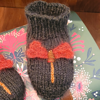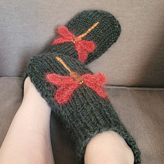 Ces libellules d’Or ont été initialement créées pour embellir mes pantoufles DELA : https://www.ravelry.com/patterns/library/pantoufles-dela