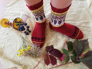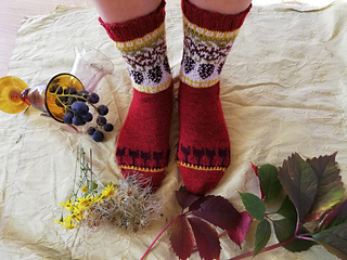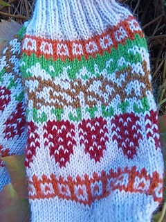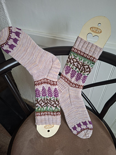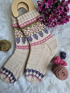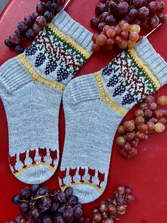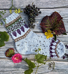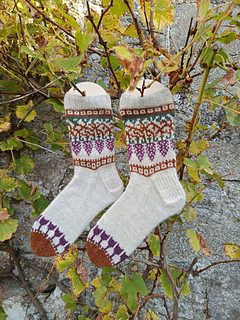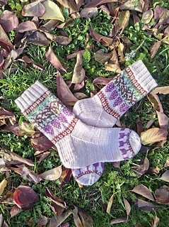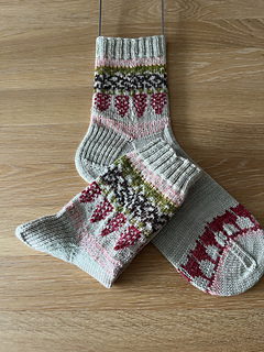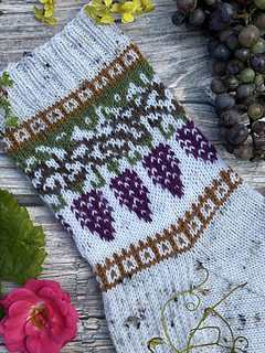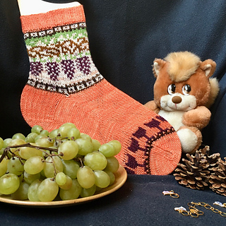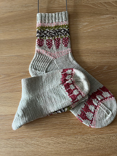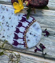 Knitted cuff down with a heel flap and a gusset, this pattern features a motif in stranded colorwork. It’s the perfect project for using your bits of leftover yarn.