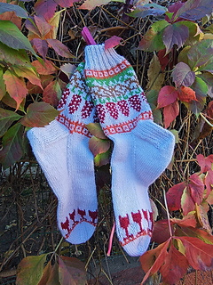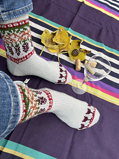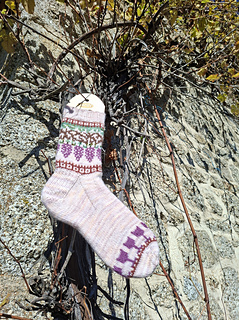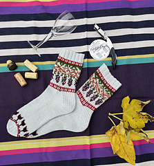 Tricoté depuis la cheville vers la pointe avec un talon renforcé à gousset, ce modèle propose un motif réalisé en jacquard. Il est idéal pour utiliser de petits restes de laine.