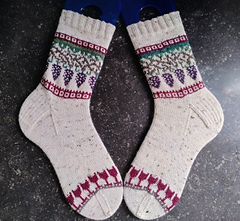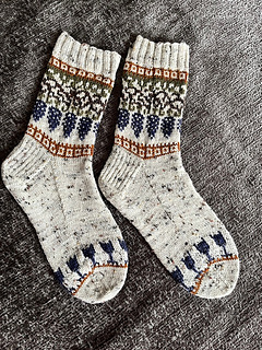 - Durable Soqs tweed (65% Wool/25% polyamide/7% acrylic/3% viscose), 210m/50g, in colorway: 326 Ivory (MP)