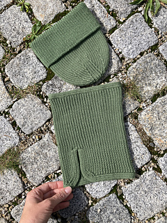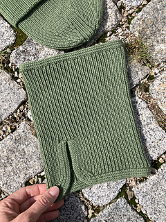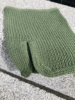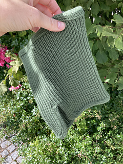 Der Loop wird von oben nach unten im Rippenmuster (1 M re/1 M li) gestrickt. Zuerst wird in Runden mit einer kurzen Rundstricknadel gearbeitet, dann wird das Strickstück geteilt und flach weitergestrickt, bis die gewünschte Länge erreicht ist. Die abgerundeten Kanten entstehen durch Abnahmen nach rechts und links. Zum Schluss werden dekorative Kanten doppelt gestrickt – für einen sauberen, fertigen Look.