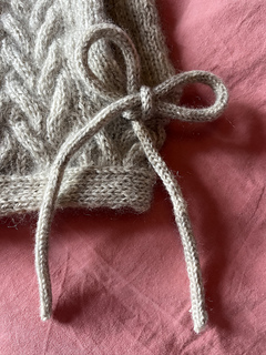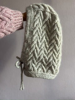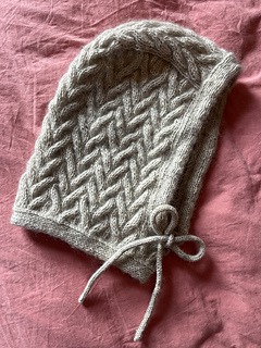 Først strikkes balaclavaens top frem og tilbage med snoninger efter diagrammet. Herefter strikkes der masker op langs hver side, hvor der arbejdes med vendepinde for at forme rundingen på balaclavaens top. Der strikkes videre over alle masker frem og tilbage ned langs siderne. I bunden samles arbejdet med løkkeopslag og halsen strikkes rundt over alle masker. Der afsluttes med en dobbeltstrikket kant i bunden og en langs åbningen til ansigtet, hvor der endvidere indarbejdes huller til en hættesnor, så størrelsen kan tilpasses. Snoren strikkes som en hestetømme / i-cord i hånden eller på en strikkelise.