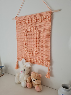 FINISHED MEASUREMENTS: Approx Width 35cm/13in, 41cm/16in from top of rod, 71cm/28in from top of hanging loop to bottom of tassels
