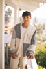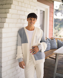 The letter sweater is a cardigan that looks like a patchwork knit varsity jacket. It’s got three shades and is a light, cozy layer perfect for the spring.