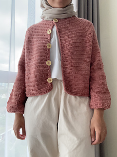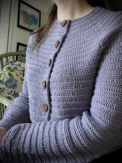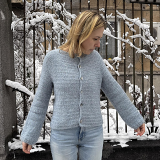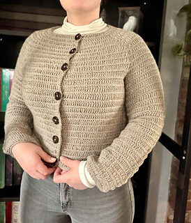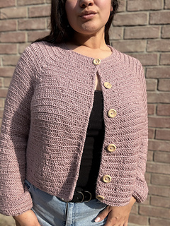 This crochet cardigan pattern creates a seamless top-down raglan sweater with a soft knit-look texture and elegant drape. Designed for intermediate crocheters, this modern garment features invisible raglan increases, a built-in button band, and a simple two-row repeat that makes it both engaging and wearable.