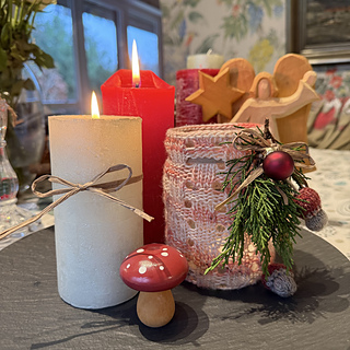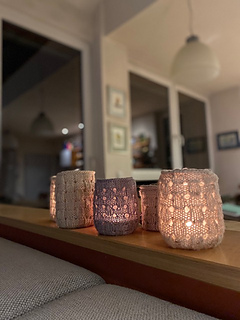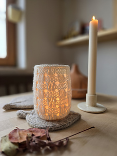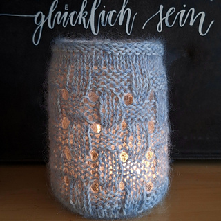 With an easy-to-knit stitch pattern, empty jars can quickly get a beautiful make over to look nice enough for the coffee table – and to become a lovely, bright spot, a Lichtblick, to brighten up dark and dull days.