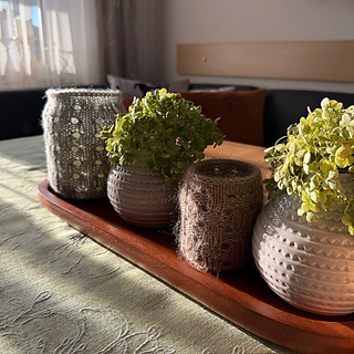 Please feel free to use other yarns and adapt height and circumference to your jar.