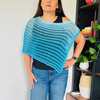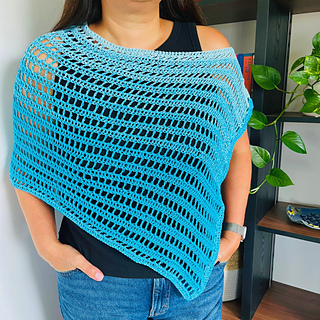 Looking for the perfect beginner-friendly crochet project? This Ocean breeze poncho pattern is just what you need! This airy poncho is made from a simple rectangle and comes together with just one small seam.