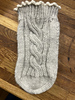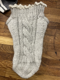 Subtle ribbing frames the cable beautifully, while the delicate picot cuff adds a touch of understated luxury.