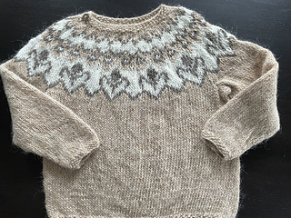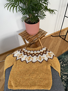 Lettlopi wool is what I used, but any yarn that fits needle sizes 3,5mm and 4,5mm is fine.