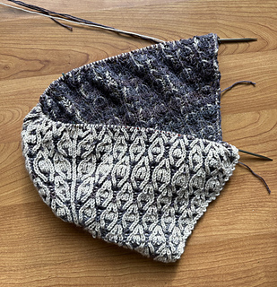 The brioche stitch’s lush, double-layered texture allows the shawl to mimic the natural folds and curves of flower petals. The use of two contrasting colors enhances this effect, adding depth and visual interest, much like the varying shades found in nature’s blooms.