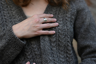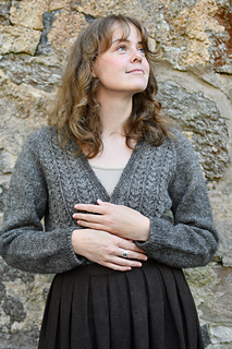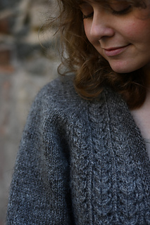 Koftan stickas fram och tillbaka, uppifrån och ner med raglanökningar och ett enkelt spetsmönster över fram- och bakstycke. Ärmarna stickas i slätstickning med magic loop. Den knapphålsfria kanten längs framsidor och hals stickas på efteråt.