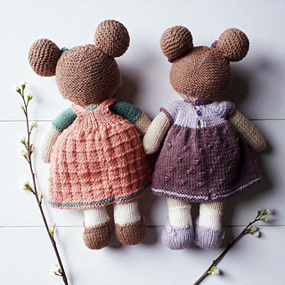 You can knit Lilly and May with socks and shoes worked right into the legs (so nothing ever goes missing), or leave their feet bare and make a few pairs of sweet little shoes to mix and match with every outfit—the choice is yours!
