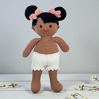 Both the dolls and their clothes are knitted flat using standard straight needles and then seamed. You’ll use basic stitches throughout, working the dolls from the head down, and adding the arms and hair at the end for a classic handmade finish.