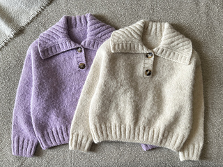 Lilly’s Sweater is knitted top down, starting with the back yoke which is worked back and forth (while shaping shoulders and back neck with short rows), after that sts are picked up across the shoulders to form the front yoke, then the collar and the front bands are knitted, both yokes are then joined together to work the rest of the sweater’s body in the round. Sts for the sleeves are then picked up, sleeve cap is shaped with short rows and then continued in the round.