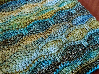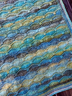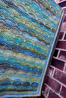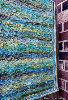 This blanket, inspired by Monet’s “Water Lily Pond and Japanese Bridge”, works up easily and quickly. ~