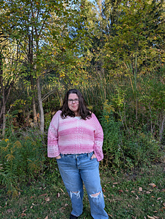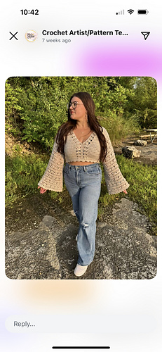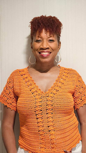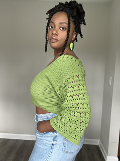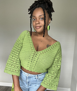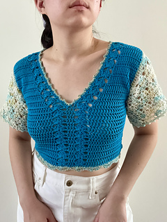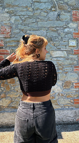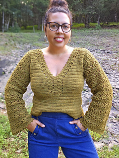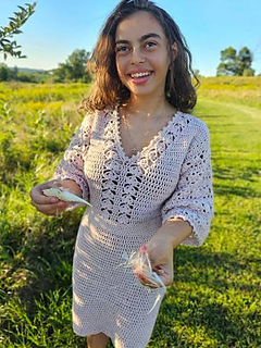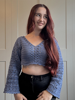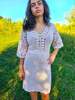 I used roughly 700m of yarn foe the sample size top (UK 8) and 1200mm for the sample size dress (UK 8).
