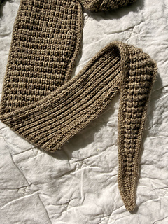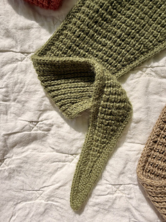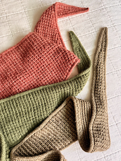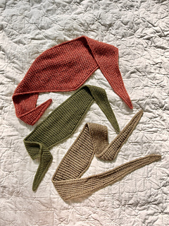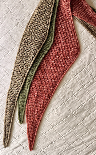 The Limun Kerchief is a 3 in 1 pattern featuring a thermal brioche stitch using various increase rates to form 3 different elongated triangular shaped neckwear (kerchief/necktie/scarf) with an i-cord selvedge for a clean and structured look.