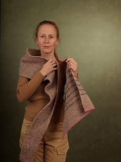 Linefall is a long, softly tapered shawl designed for warmth without heaviness.