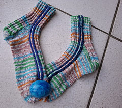 Techniken: Rippenmuster, Kontraststreifen, Käppchenferse, Kitchener Stitch