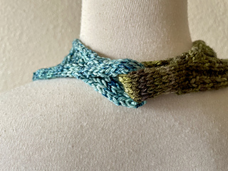 The sample shown is the larger size; the smaller option may work a little better as an earwarmer/neckwarmer because it should have more negative ease. You can bind off without completing the pattern repeat though, so checking your fit as you approach the end is not a bad idea!