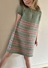 Linva Kjole er en let og tidløs børnekjole med striber i glatstrik og perlestrik. Kjolen strikkes oppefra og ned med rundt bærestykke og korte ribærmer.