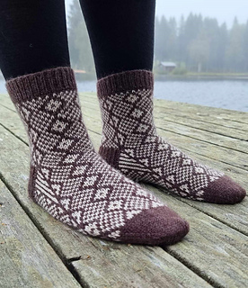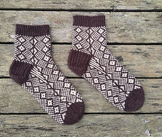 Lissie är mönsterstickade sockor som stickas uppifrån och ner, med hällapp och hälkil.