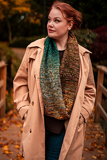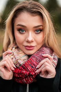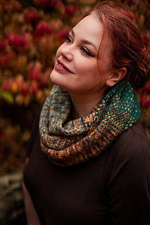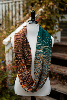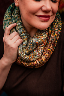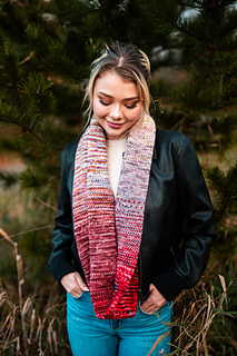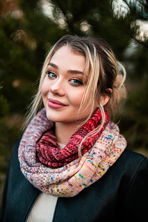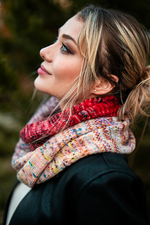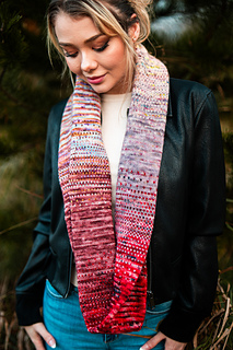 Lite Bright Loop begins with a provisional cast-on and is knit in the round in stranded colorwork to your chosen length. When you’re done, the two ends are joined seamlessly with Kitchener stitch to create a smooth infinity loop that can be worn long or doubled around your neck.