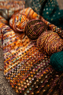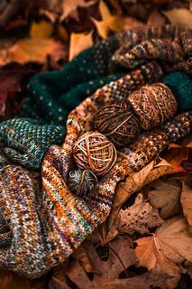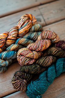 Green + Autumn Sample: DK Weight — 5-Color Version, using DK scraps, handspun, and fingering held double