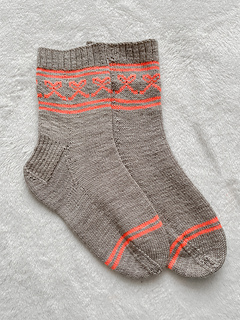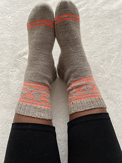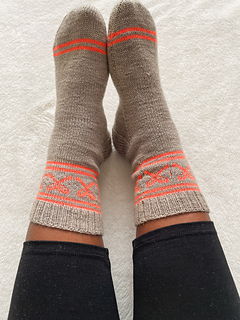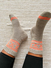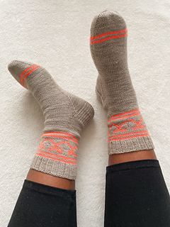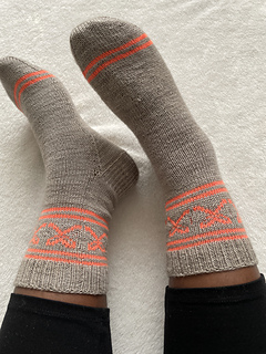 The Little Bow Socks are knit from the cuff down and work up quickly in a simple pattern with sock bow colourwork motifs on the leg. The socks have a heel flap and gusset for a comfortable fit.