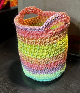 This pattern is one that I created after reading one that was similar on the yarn label, but I modified it to be the size I wanted and created the handles differently than the label stated. This is perfect for storing crochet hooks, pens, etc! And makes up in less than half an hour!