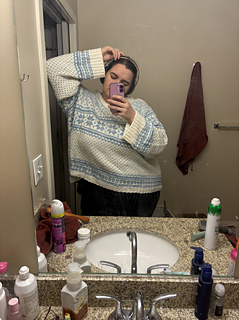 Little Crystals is meant to be oversized, super cozy, with long roomy sleeves with loose cuffs. I recommend 6-8” / 15-20 cm of positive ease at the bust. For better fit consider choosing the size graded for your Upper Chest measurement. See the schematic and size chart in the photos.