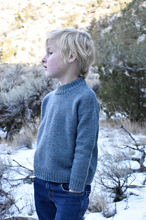 Little Deep Moss is knit seamlessly from the top down. You begin by casting on all the stitches for the back, work short rows to shape the shoulders, and then knit straight to the depth of the yoke. The front shoulders are picked up from the back piece. Short rows are again used to shape the shoulders and crew neckline shaping is done with increases. Following the shaping, the front is worked straight to the depth of the yoke. The body is knit in the round. Sleeves are picked up and knit in the round. A doubled neckline finishes this cozy sweater.
