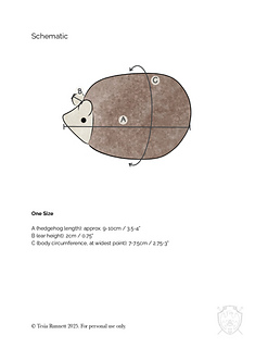 The finished hedgehog is approximately 9-10cm / 3.5-4” long and 7-7.5cm / 2.75-3” circumference.