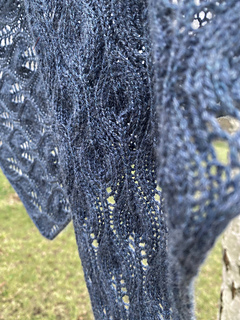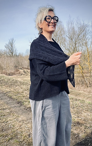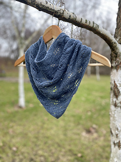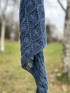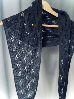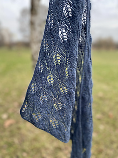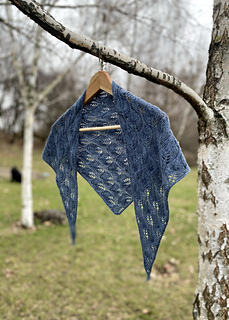The Little Leaf Scarf is a small, elegant accessory worked from a single skein of lace-weight yarn. The pattern features a delicate, airy lace motif, and the scarf looks attractive on both sides. Its shape resembles a long, gently flared trapezoid- the final width depends entirely on your preference. You can also decide whether the center section forms a slight angle or whether both edges remain parallel.