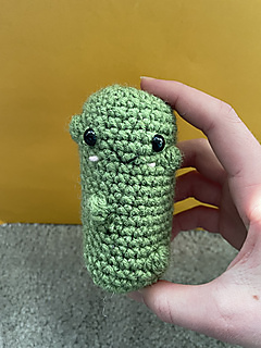 This is a free pattern for a pickle. It is about 3 inches tall, and the bobble stitches add a fun texture. the only sewing is to close the piece, and add a face.