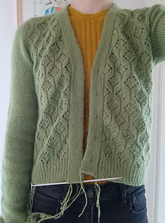 Cardigan sample: size 2, knitted with Knitting for Olive Merino and Knitting for Olive Silk Mohair, one strand of each